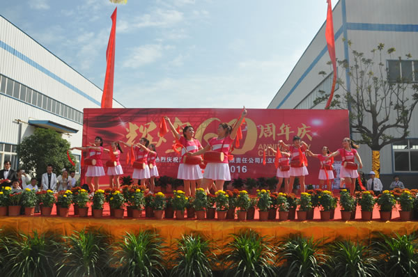 伴隨著歡慶的鑼鼓,飄揚著慶賀的彩旗,慶典場面隆重而壯觀。參加紀念慶典的有武漢市新洲區政府副區長李麗、駐公司軍代表、區委統戰部、總工會和相關部門領導、部分客戶和供應商代表、公司駐全國各地分公司負責人、公司原歷任老領導和老員工代表、受公司和上級各級政府表彰的勞動模范和優秀共產黨員及員工代表等380余人。會議由公司副董事長程正紅同志主持,總經理陶力同志致歡迎詞,副區長李麗代表區委區政府致辭、原公司老廠長李宏操代表公司老領導和老同志致辭,會上還對公司有特殊貢獻的老領導和在職員工進行了授牌儀式,之后由董事長陶宏國同志代表全體股東和員工向全體參會人員致了答謝詞,最后,在豐富多彩的文藝表演節目后,結束了歡快熱烈的紀念慶典。