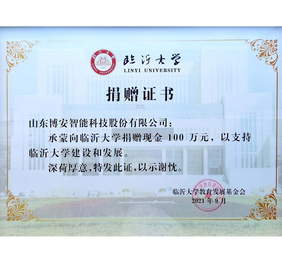 2019臨沂大學捐贈證書-智慧黨建與學院文化項目35萬元設備