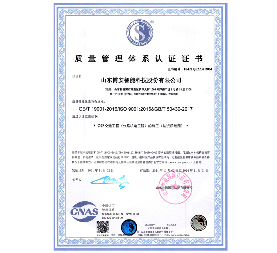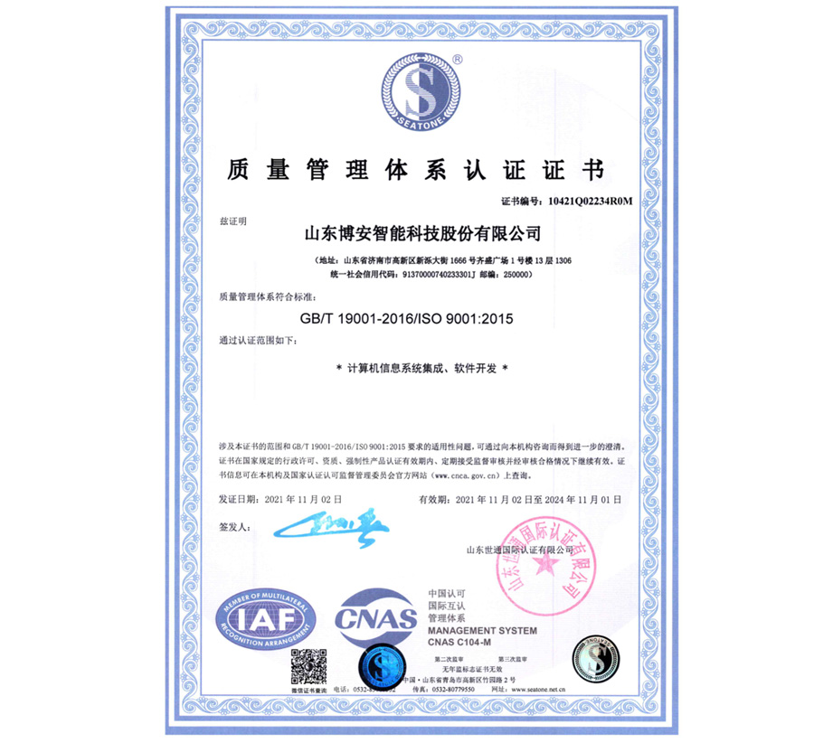 質(zhì)量管理體系認(rèn)證證書
