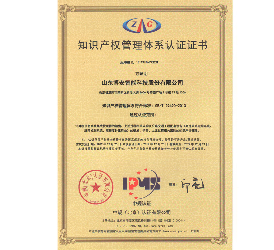 知識產(chǎn)權(quán)體系證書