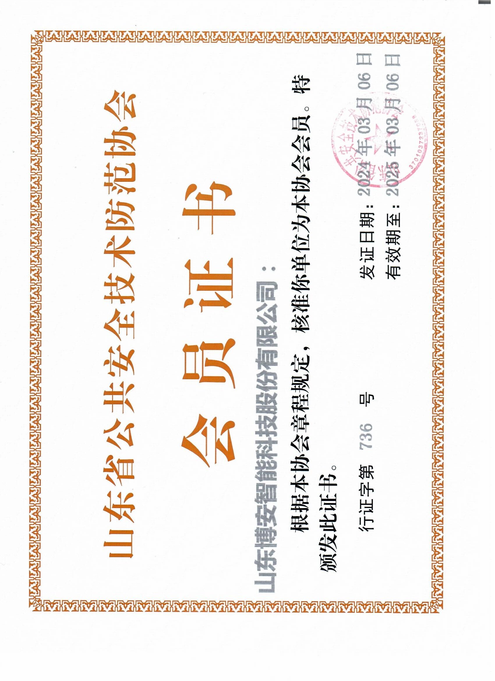 2024山東省公共安全技術(shù)防范協(xié)會會員證書