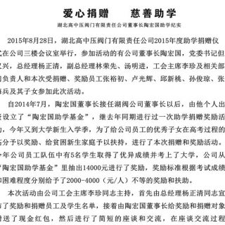 湖北高中壓閥門有限責(zé)任公司董事長陶宏國助學(xué)紀(jì)實